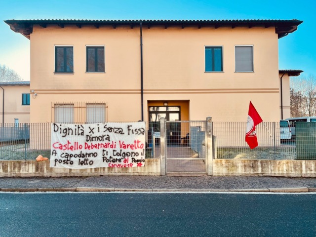 “Castello Debernardi Varetto a Capodanno ti tolgono il posto letto” il titolo dello striscione affisso all’ingresso del dormitorio di via Nino Costa.