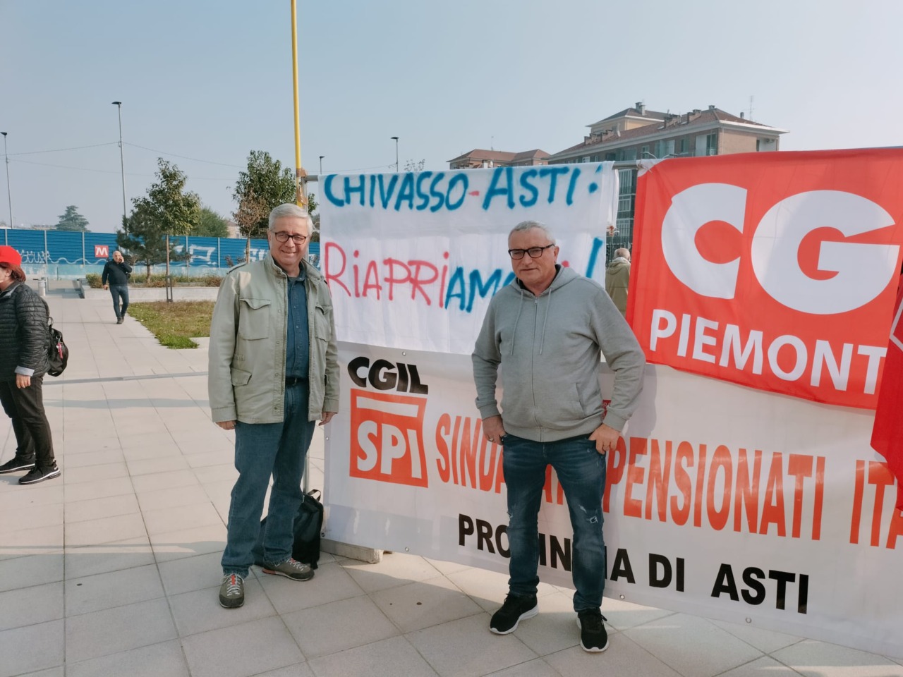 Anche Sinistra Ecologista Chivasso era presente con uno striscione per chiedere la riapertura della linea ferroviaria Chivasso-Asti. Tra i partecipanti, il segretario cittadino Frediano Dutto e l’assessore Fabrizio Debernardi.
