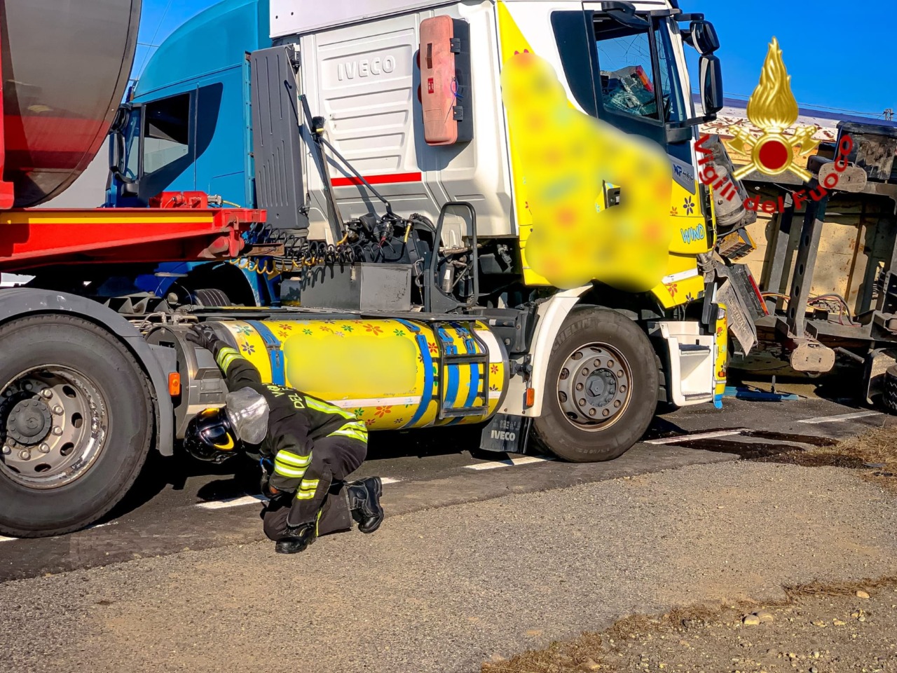 Scontro tra due mezzi pesanti; di cui uno alimentato GNL (Gas Naturale Liquefatto), intorno alle 14 di oggi, mercoledì 5 novembre 2025, sulla Sp 31bis all’altezza della frazione di Borgo Revel a Verolengo.