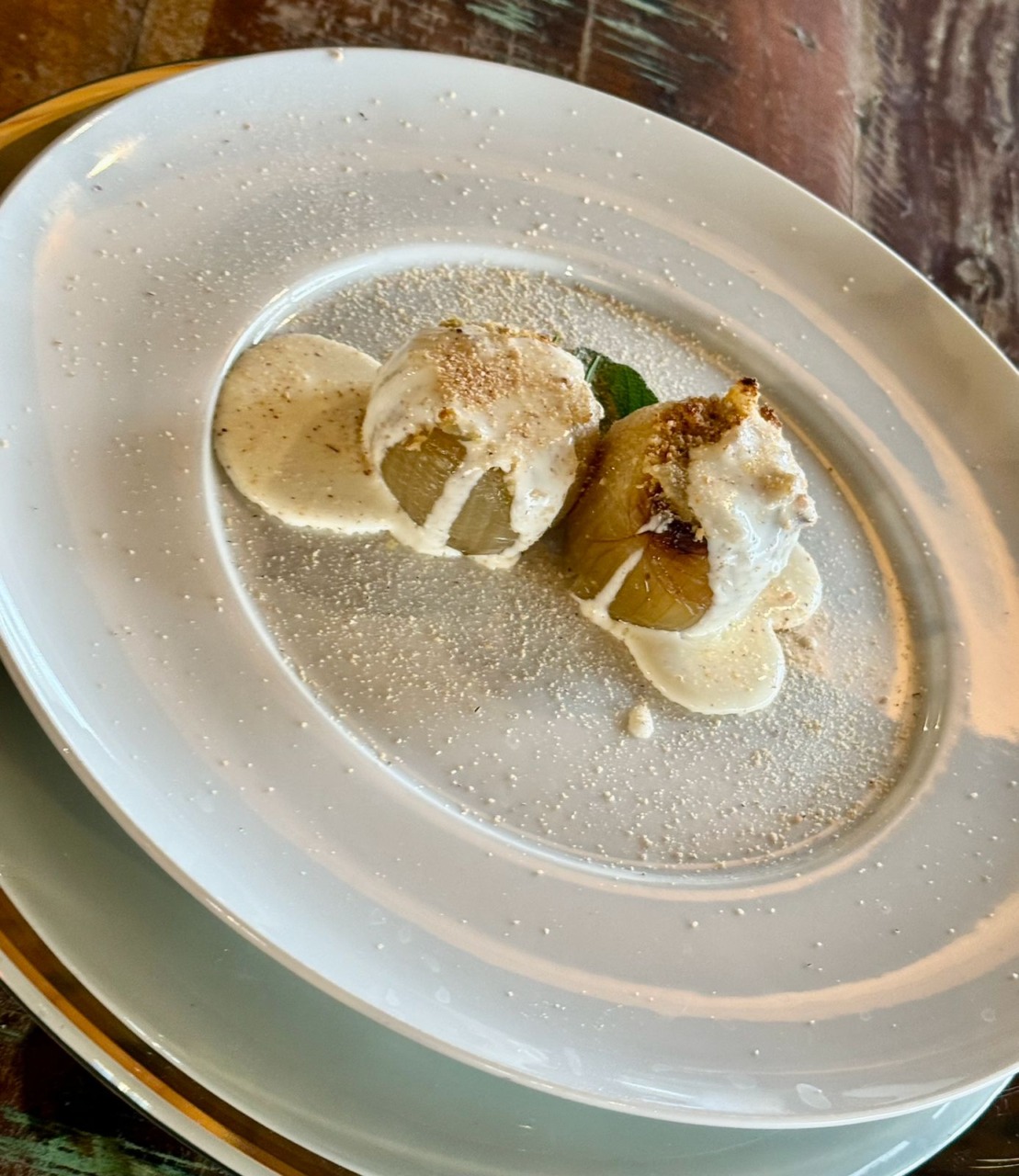 La ricetta del ristorante di Arcore: cipolla con fonduta di formaggi e polvere di cipolla bruciata